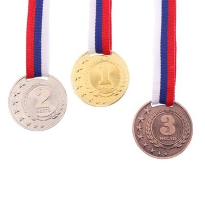 Медаль призовая бронза 064, d=4 см, 3 место, с лентой. <b> Медаль</b> — знак отличия, которым награждают самых достойных. Она вручается лишь тем, кто проявил настойчивость и волю к победе. Каждое достижение — это важное событие, которое должно остаться в памяти на долгие годы. Любое спортивное состязание, профессиональное или среди любителей, любое корпоративное мероприятие — отличный повод для того, чтобы отметить лучших из лучших.