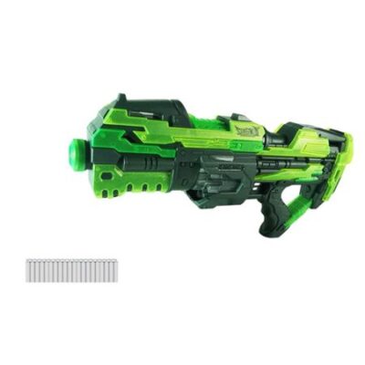 Игры с оружием – любимая забава для всех мальчишек! Большой бластер от бренда ABtoys предназначен для активных игр и безопасной стрельбы мягкими пулями. Бластер выполнен в черно-зеленом корпусе, имеет внушительный внешний вид. Он оснащен функцией автоматической стрельбы безопасными пулями, имеет откидную вспомогательную рукоятку и съемные элементы: приклад, прицел, специальный блок, обеспечивающий подсветку. Флуоресцентные пули, входящие в комплект, сделают игру ребенка еще более интересной и увлекательной. Мегабластер обязательно понравится мальчикам и поможет им стать настоящими супергероями, побеждающими всех врагов. В процессе игры ребенок будет тренировать меткость, ловкость и развивать свое воображение.Размер бластера (дхшхв): 45х8х23 см. Дальность стрельбы 14 метров.Функции: автоматическая стрельба, световые эффекты, звуковые эффекты.Комплектность: бластер – 1 шт., мягкие пули – 20 шт.Материал: полимерные материалы.Для работы требуются 4 батарейки типа «АА» (в комплект не входят).
