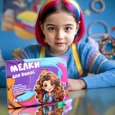 Мелки для волос — то, что нужно юной девчонке или подростку, чтобы подчеркнуть свою индивидуальность. Разноцветные прядки ярких или пастельных оттенков помогут не только ненадолго сменить имидж, но и поднять настроение. С помощью этого средства, юная принцесса, будет блистать своей красотой, радоваться и любоваться собой перед зеркалом.Способ применения:Положи сухое полотенце на плечи, чтобы защитить одежду, или просто надень старую футболку.Смочи немного волосы водой, чтоб мел лучше впитался в волосы.Води выбранным мелком по волосам сверху вниз и закручивай вокруг прядей.Мел впитается лучше, если выпрямить волосы утюжком или завить плойкой.Для дополнительной фиксации, обработай пряди лаком для волос.Не расчесывай пряди после нанесения мела, во избежание его вычесывания.Чтобы смыть цвет, просто вымой голову с шампунем. Светлые волосы, возможно, потребуется вымыть 2 раза.Внимание: под дождем и от воздействия воды мел может попасть на одежду.Состав: talc, synthetic fluorphlogopite, silicon silicate, magnesium stearate, silicone, polybutene, pigment.Возраст применения: с 3-х лет.