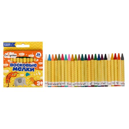 Мелки восковые 24 цвета, 93×8 мм, Calligrata, в картонной коробке. Рисование восковыми мелками способствует развитию мелкой моторики рук, воображения и помогает формировать цветовое восприятие. Длина карандашей 93 мм, диаметр 8 мм. Идеальны для рисования на бумаге любого типа, а также дереве, картоне и стекле. Детские восковые карандаши обладают повышенной мягкостью, так как в новой формуле содержится увеличенное количество пчелиного воска. Детские восковые мелки для рисования не пачкают руки — цветные карандаши идут в индивидуальной бумажной обертке, которые также не дают ручке скользить. Набор восковых цветных карандашей легко затачиваются и стираются ластиком. Яркие и мягкие восковые карандаши для малышей способствуют развитию мелкой моторики и раскрывают творческие способности ребенка. Эти карандаши позволяют работать с разной основой и хорошо ложатся, рисунок долго сохраняет насыщенность и яркость.