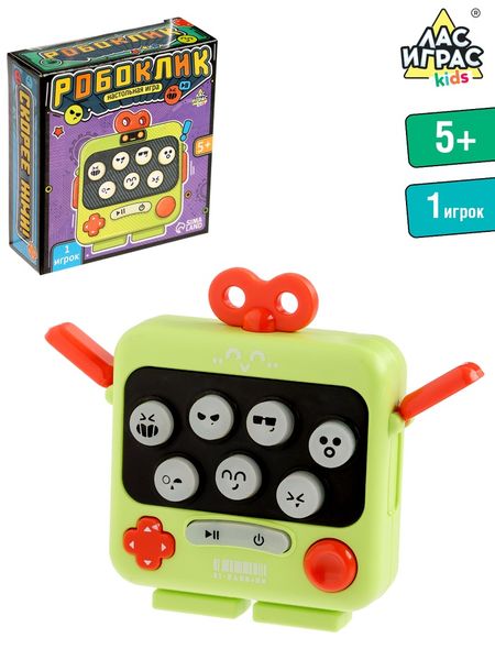 Игра для одного игрока «Робоклик» — это отличный способ тренировать память и ловкость. Задание простое — нажимайте на загорающиеся кнопки не ошибаясь. Идеально подойдёт для детей старше 5 лет, ведь она не только развлекает, но и способствует развитию важных навыков.ОсобенностиИгра для 1 игрока.Подходит для детей от 5 лет.Развивает память, внимание и ловкость.Игровой процесс помогает улучшить реакцию и концентрацию.Как играть?Задача очень простая, но требует внимания. Когда кнопки начинают загораться, нужно быстро и точно нажимать на них, не допуская ошибок. Это отличная тренировка для памяти и реакции!Играем с пользойЭта игра улучшает память и ловкость, что будет полезно не только для детей, но и для взрослых. Чем больше вы играете, тем быстрее реагируете и лучше запоминаете. Простой, но увлекательный процесс не даст заскучать и будет стимулировать ребёнка к регулярным тренировкам мозга.
