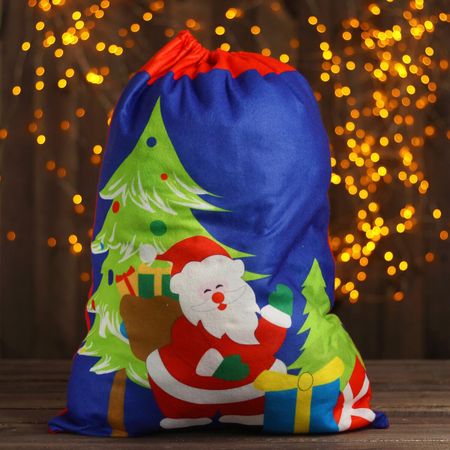 Мешок Деда Мороза «Дедушка с подарками», 58 × 42 см, цвет синий. Новогодний мешок Деда Мороза «Дедушка с подарками» поможет дополнить образ Деда Мороза в новогоднюю ночь! В него поместятся много подарков для детей. Также его можно использовать в качестве упаковки для подарка, малыш удивится, когда найдет под елкой подарок в таком мешке! Особенности <ul> <li> Размер мешка: 58 × 43 см</li> <li> Мешок закрывается при помощи затягивания ленты</li> <li> Новогодний мешок сделан из полиэстера</li> <li> Мешок можно использовать для создания праздничного интерьера, он обязательно поднимет новогоднее настроение!</li> </ul> Этот очаровательный мешок станет прекрасным дополнением к вашему праздничному декору и создаст неповторимую атмосферу волшебства.