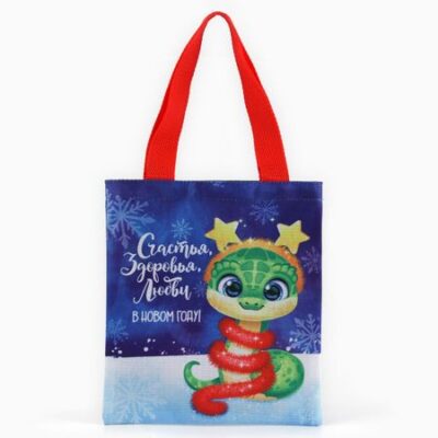 Мешок для конфет «Змея: Счастья, здоровья, любви», детский шопер, 22 × 20 см. Яркий и стильный мешочек для конфет «Змея: Счастья, здоровья, любви» станет отличным дополнением к новогодним праздникам. Он выполнен из мягкого текстиля и украшен красочным изображением змеи — символа 2025 года. Такая упаковка придаст подарку особый шарм и запомнится надолго. <b> Особенности</b> <ul> <li> Размер мешочка 22 × 20 см, что позволяет положить внутрь не только конфеты, но и небольшие игрушки или сувениры.</li> <li> Оснащен удобными ручками, благодаря которым мешочек легко носить с собой.</li> <li> Украшен красочным изображением змеи.</li> </ul> Такой мешочек станет прекрасным дополнением к подарку для детей и взрослых. Он идеально подойдет для наполнения конфетами, маленькими игрушками или другими приятными сюрпризами.