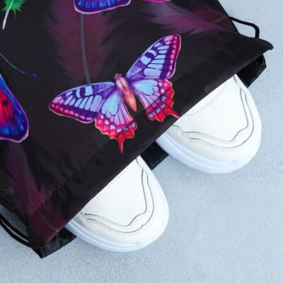 Мешок для обуви «Яркие бабочки» болоньевый материал, 43×33 см. Сумка для обуви — необходимая вещь в повседневной жизни. С ней удобно ходить на учебу, посещать тренировки и использовать для хранения личных вещей. В сумку можно сложить как сменную обувь, так и спортивную одежду. Яркая, вместительная, легко стирается и быстро сушится! Вид застежки: шнуровка; Упаковка: пакет; Рекомендации по уходу: ручная стирка.