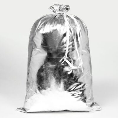 Мешок новогодний Деда Мороза, серебряный, 60×40 см. Новогодний мешок Деда Мороза поможет дополнить образ Деда Мороза в новогоднюю ночь! В него поместятся много подарков для детей. Также его можно использовать в качестве упаковки для подарка, малыш удивится, когда найдет под елкой подарок в таком мешке! <b> Особенности</b> <ul> <li> Размер мешка: 60 × 40 см.</li> <li> Мешок выдерживает до 1,5 кг.</li> <li> Мешок закрывается при помощи затягивания ленты.</li> <li> Новогодний мешок сделан из полиэстера.</li> <li> Мешок можно использовать для создания праздничного интерьера, он обязательно поднимет новогоднее настроение!</li> </ul>