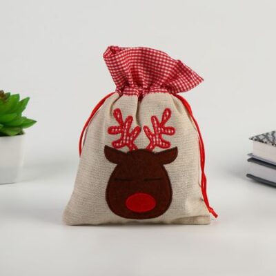 Мешок новогодний для подарков «Олень», 15 х 20 см. Текстильный мешочек «Олень» поможет красиво упаковать подарок к Новому году. <b> Преимущества такой упаковки</b> <ul> <li> Вверху у мешочка есть шнурок который стягивает края — подарок случайно не выпадет.</li> <li> Мешочек сшит из мягкого полиэстера. Такой материал хорошо защищает от пыли, влаги и посторонних запахов.</li> <li> Если изделие испачкается, его можно постирать в теплой воде или протереть влажной губкой.</li> <li> Рекомендуем стирать при температуре 30–40 °C в режимам «Деликатная стирка», «Ручная стирка», «Шерсть».</li> <li> После стирки изделие необходимо хорошо просушить, чтобы избежать неприятного запаха затхлости.</li> </ul>
