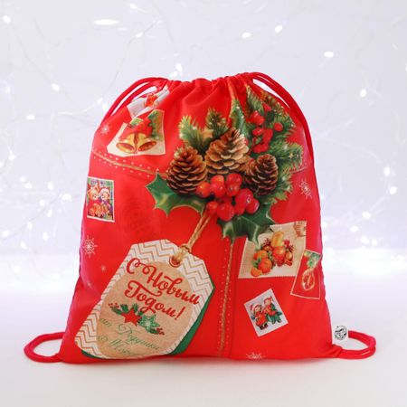 Мешок новогодний под сладости 290×340 мм, «С Новым годом», мягкий полиэстер плотностью 210D. Сумка под сладости на двойном шнуре, может быть использован и для других бытовых целей. <b> Характеристики: </b> <li> Состав: мягкий качественный полиэстер 100%;</li> <li> Размеры: 290 х 340 х 10 мм;</li> <li> Плотность: 210D;</li> <li> Выдерживает нагрузку: до 5 кг;</li> <li> Производство: РОССИЯ.</li>