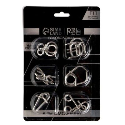 Металлические головоломки «Игры разума №1», набор 6 шт., на блистере. Металлические головоломки «Игры разума №1» — это увлекательный набор для любителей логических задач. В комплекте представлены различные головоломки с кольцами и замками, которые заставят размышлять, анализировать и находить нестандартные решения. Такой формат отлично подходит как для детей, так и для взрослых, ведь тренировка ума полезна в любом возрасте. <b> Особенности набора</b> <ul> <li> 6 головоломок разного типа и сложности.</li> <li> Металлические детали обеспечивают долговечность и надежность.</li> <li> Компактный формат позволяет играть в любом месте — дома, на отдыхе, в дороге.</li> </ul> <b> Развитие через игру</b> Разгадывание головоломок помогает улучшить логическое мышление, концентрацию и мелкую моторику. Каждая задача требует внимательности и терпения, что делает процесс решения особенно увлекательным. Набор головоломок — это не просто игрушка, а отличный инструмент для развития мышления и навыков решения задач.