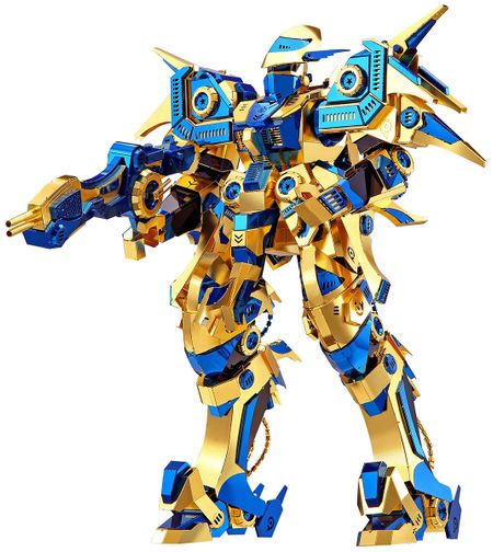 Небесный Властелин — повелитель неба, известный своей скоростью. Броня в форме лезвия на голове чрезвычайно прочная, а усовершенствованная светочувствительная система визуализации обеспечивает ему хороший обзор. Сенсорные радары с обеих сторон могут улавливать энергетические колебания в радиусе тысячи миль, что позволяет ему молниеносно поражать противника.Громовая пушка в его руке способна поражать электрическим током, а мощный разряд тока наводит на людей страх. Крылья на его плечах позволяют ему путешествовать по небу, а термоядерное устройство, создающее источник грома, расположенное у него посередине, может вызвать ужасающую грозу и увлечь врага в ад смерти.Набор piececool имеет высочайший уровень сложности, и для создания готовой модели высотой 22 см используется 489 компонентов. Как и во всех наборах piececool, для создания модели не требуется клей, краска или припой.