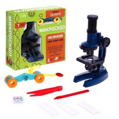 Микроскоп «Юный исследователь», 7 предметов, увеличение x100, x200, x300. <b> Делаем новые открытия! </b> Малыш любит исследования? Предлагаем вашему вниманию увлекательный набор биолога. С ним ребенок научится пользоваться микроскопом, который продемонстрирует, как выглядят клетки живых организмов. <b> Для этого в комплекте есть все необходимое: </b> <ul> <li> микроскоп;</li> <li> бинокль; </li> <li> пустой слайд; </li> <li> образец клеток; </li> <li> пинцет; </li> <li> игла. </li> </ul> Делать первые открытия в области биологии с ярким микроскопом не составит труда. <b> Полезная наука</b> Такая игрушка станет для девчонок и мальчишек проводником в мир знаний, разовьет логику, мышление и творческие способности. Товар предназначен для детей старше 3 лет.