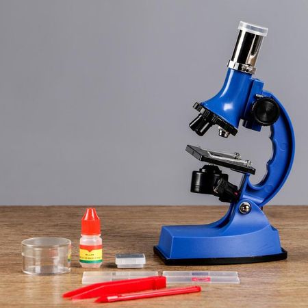 Микроскоп, кратность увеличения 600х, 300х, 100х, с подсветкой, синий