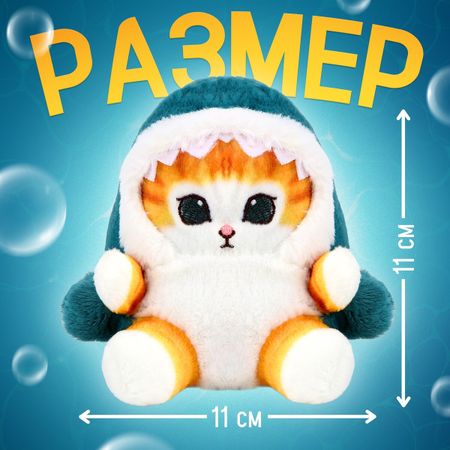 Мягкая игрушка «Котейка Акуленок», 11 см. Мягкая игрушка «Котейка Акуленок» — универсальный презент для ребенка и взрослого. Изделие выполнено из приятного на ощупь материала. <b> Особенности мягкой игрушки</b> <ul> <li> Высота — 11 см.</li> <li> Верх сшит из мягкого лавсана.</li> <li> Наполнитель — синтепон.</li> <li> Мордочка вышита. Такая игрушка прослужит долгие годы, не теряя своего привлекательного внешнего вида. Вышитое личико безопасно для детей, так как не содержит мелких деталей.</li> <li> Костюм в виде акулы пришит к игрушке.</li> </ul> <b> Как ухаживать за мягкой игрушкой</b> <ul> <li> Если изделие испачкается, его можно постирать в теплой воде или протереть влажной губкой.</li> <li> Рекомендуем стирать в воде при температуре 30–40 °C в режимах «Деликатная стирка», «Ручная стирка», «Шерсть».</li> <li> После стирки игрушку необходимо хорошо просушить, чтобы избежать появления неприятного запаха затхлости.</li> <li> Не рекомендуем сушить изделие на батарее: от высокой температуры и длительного контакта с горячей поверхностью материал игрушки может испортиться.</li> </ul>