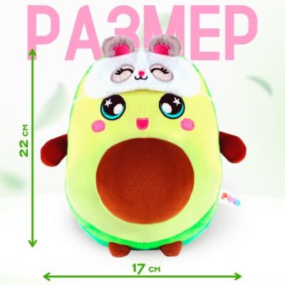 Мягкая игрушка «Авокадо», в маске, 22 см. Мягкая игрушка «Авокадо» — универсальный презент для ребенка и взрослого. Изделие выполнено из приятного на ощупь материала. <b> Особенности мягкой игрушки</b> <ul> <li> Высота — 22 см.</li> <li> Верх сшит из мягкого лавсана.</li> <li> Наполнитель — полипропилен.</li> <li> Мордочка вышита. Такая игрушка прослужит долгие годы, не теряя своего привлекательного внешнего вида. Вышитое личико безопасно для детей, так как не содержит мелких деталей.</li> <li> Маска для сна пришита к игрушке.</li> </ul> <b> Как ухаживать за мягкой игрушкой</b> <ul> <li> Если изделие испачкается, его можно постирать в теплой воде или протереть влажной губкой.</li> <li> Рекомендуем стирать в воде при температуре 30–40 °C в режимах «Деликатная стирка», «Ручная стирка», «Шерсть».</li> <li> После стирки игрушку необходимо хорошо просушить, чтобы избежать появления неприятного запаха затхлости.</li> <li> Не рекомендуем сушить изделие на батарее: от высокой температуры и длительного контакта с горячей поверхностью материал игрушки может испортиться.</li> </ul>