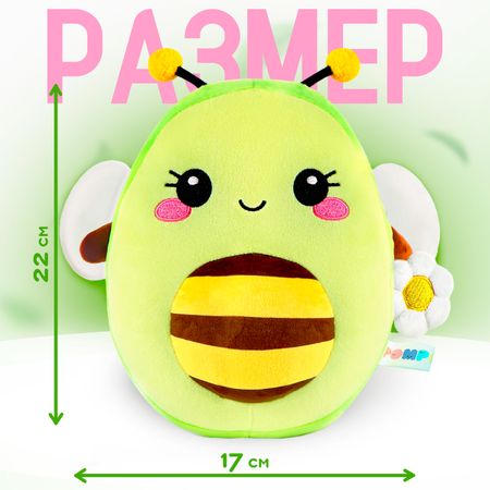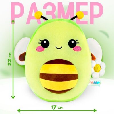 Мягкая игрушка «Авокадо-пчела», 22 см. Мягкая игрушка «Авокадо-пчела» — универсальный презент для ребенка и взрослого. Изделие выполнено из приятного на ощупь материала. <b> Особенности мягкой игрушки</b> <ul> <li> Высота — 22 см.</li> <li> Верх сшит из мягкого лавсана.</li> <li> Наполнитель — полипропилен.</li> <li> Мордочка вышита. Такая игрушка прослужит долгие годы, не теряя своего привлекательного внешнего вида. Вышитое личико безопасно для детей, так как не содержит мелких деталей.</li> </ul> <b> Как ухаживать за мягкой игрушкой</b> <ul> <li> Если изделие испачкается, его можно постирать в теплой воде или протереть влажной губкой.</li> <li> Рекомендуем стирать в воде при температуре 30–40 °C в режимах «Деликатная стирка», «Ручная стирка», «Шерсть».</li> <li> После стирки игрушку необходимо хорошо просушить, чтобы избежать появления неприятного запаха затхлости.</li> <li> Не рекомендуем сушить изделие на батарее: от высокой температуры и длительного контакта с горячей поверхностью материал игрушки может испортиться.</li> </ul>
