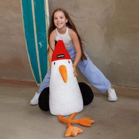 Мягкая «Чайка» — это стильный и уютный персонаж, который станет идеальным другом для ребёнка или ярким акцентом в интерьере. Белоснежный окрас и красная шапочка, вдохновлённая образом Жака-Ива Кусто, делают её уникальной и запоминающейся. Размер 40 см позволяет легко брать её с собой на прогулку, в путешествие или использовать как элемент декора.ОсобенностиИгрушка выполнена в виде очаровательной чайки с мягкой текстурой искусственного меха и наполнителем из синтепона.Размер удобен для игр, объятий или использования как декоративного элемента.Красная шапочка добавляет игривости и делает её стильным аксессуаром.Материалы гипоаллергенны, безопасны для детей и сохраняют качество даже после многократных стирок.Универсальный дизайн подходит для мальчиков и девочек, становясь практичным подарком для любого возраста.Добавьте приключений в игру«Чайка» — это не просто игрушка, а источник вдохновения для игр и творчества. Она помогает создавать увлекательные истории, исследовать морские приключения или разбирать жизненные ситуации в игровой форме. Мягкая текстура и удобный размер делают её идеальной для объятий и игр в любых условиях. Эта чайка может стать символическим подарком или частью коллекции, если собрать всех персонажей серии.Как ухаживатьЕсли изделие испачкается, его можно постирать в тёплой воде или протереть влажной губкой.Рекомендуем стирать в воде при температуре 30–40 °C в режимах «Деликатная стирка», «Ручная стирка», «Шерсть».После водных процедур игрушку необходимо хорошо просушить, чтобы избежать неприятного запаха затхлости.Не рекомендуем сушить изделие на батарее: от высокой температуры и длительного контакта с горячей поверхностью материал игрушки может испортиться.