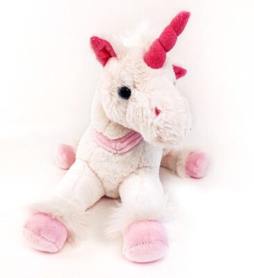 Лежачий белый единорог с нежно-розовыми лапками и ярко-розовыми ушками и рогом покорит сердце любого любителя единорогов. Его так приятно держать в руках или гладить, поскольку у него мягкий и нежный мех. Игрушка изготовлена из качественных безопасных материалов. Станет приятным подарком для каждого ребенка.
