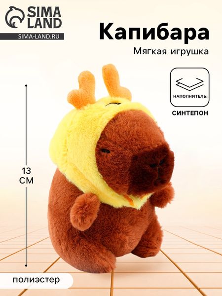 Мягкая игрушка «Капибара» в шапочке оленя, 13 см
