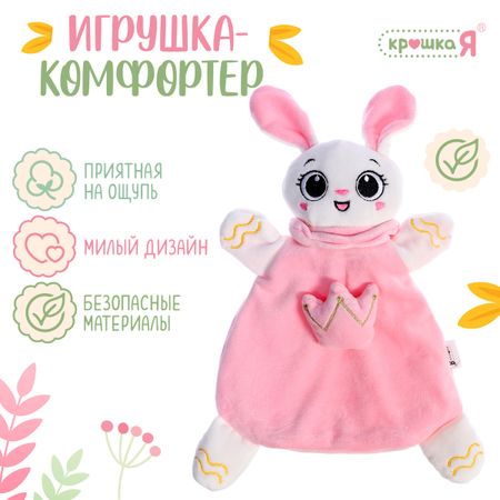 Мягкая игрушка — комфортер «Зайчик», розовый. Мягкая игрушка-комфортер в форме зайчика станет уютным спутником для самых маленьких. Эта нежная текстильная игрушка подходит с первых дней жизни и радует своим дизайном. Зайчик не только успокаивает ребенка, но и помогает развивать тактильные ощущения. Ее можно использовать как первую игрушку или комфортера для сна. <b> Особенности</b> <ul> <li> Комфортер выполнен в форме зайца с ушками, которые удобно держать в маленьких ручках.</li> <li> Можно использовать как куклу-перчатку, надевая на руку для игр с ребенком.</li> <li> Подходит для малышей с рождения.</li> <li> Изготовлен из мягкого текстиля, который приятен на ощупь.</li> </ul> Малыши часто нуждаются в игрушке, которая поможет успокоиться или отвлечься. Комфортер-зайчик сочетает в себе игрушку для сна и друга для игр. Родители могут использовать его для мягкой развивающей игры, рассказывая истории или имитируя движения зайчика. Такая игрушка станет верным спутником ребенка дома и в дороге.