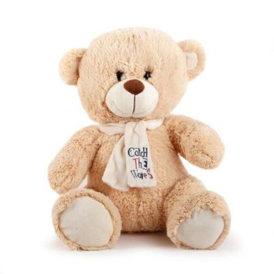 Косолапый медвежонок Тишка Медведь Тишка, 40 см, — очаровательный и милый друг. Красивые коллекционные игрушки изготовлены из качественного материала с применением ручной работы. Каждая деталь изготавливается по особым чертежам, так, чтобы игрушка наиболее близко была похожа на оригинал. Особенности игрушки Медвежонок изготовлен из короткого искусственного меха в сочетании с плюшем. Мордочка Тишки плюшевая, вытянутая, увенчанная коричневым треугольным носом. Рот вышит коричневой нитью. Глаза круглые, глубоко утопленные. Голова большая с круглыми ушами по бокам. Весь медвежонок сшит из бежевого искусственного меха. Подошвы ног плюшевые. Игрушка сидит с вытянутыми вперед руками. На шее повязан белый шарф с вышивкой. Мягкие игрушки приятны на ощупь, с ними приятно играть. С таким другом ребенок перестанет бояться спать в комнате один и будет легко засыпать в обнимку с игрушкой. Какие навыки развиваются Игрушка помогает развиваться образному мышлению и воображению, а при прикосновении к медведю развиваются тактильные ощущения. Играя с Тишкой, ребенок учится быть сдержанным и внимательным, усидчивым и терпеливым. Покупать медвежонка от Button Blue рекомендуется деткам от трех лет. Игрушка безопасна! Продукция сертифицирована, экологически безопасна для ребенка, использованные красители не токсичны и гипоаллергенны.