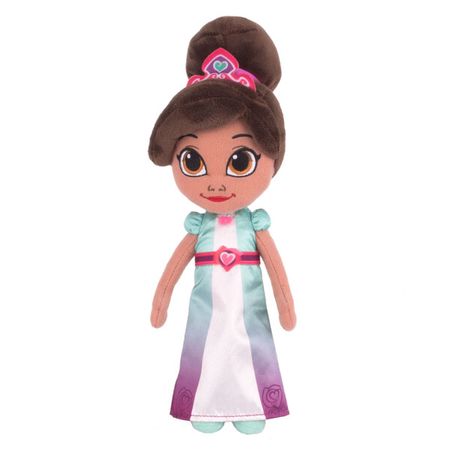 Мягкая игрушка в виде принцессы Неллы Плюшевая игрушка в виде главной героини популярного мультсериала «Нелла – отважная принцесса» сразу же понравится юным любительницам мультфильма. Она позволит придумывать большое количество игр и приключений с персонажем и станет прекрасным украшением детской комнаты, не занимая лишнего пространства. Игрушка изготовлена из качественного, гипоаллергенного плюша. Неллу в образе принцессы легко узнать по: черным волосам и высокой пышной прическе; небольшой диадеме розового цвета на голове; красивому голубому платью с розовым поясом; розовой подвеске в форме сердца. Универсальная красивая игрушка Плюшевая фигурка безопасна для детей любого возраста. Мягкая ткань приятна на ощупь. Игрушка размером 29 х 14 х 9 см не занимает много места при хранении. Благодаря ее незначительному весу (всего 0,08 кг) можно не расставаться с любимой плюшевой игрушкой и брать ее с собой везде: в путешествие, на улицу, в гости. Развивающие способности Используя плюшевую игрушку Неллу в играх по мотивам мультика, можно тренировать память, логику и образное мышление. Руки и туловище куклы можно сгибать, имитируя движения, что делает процесс игры более реалистичным. Девочка может подключить фантазию и придумать собственные приключения для любимой героини или повторить запомнившийся эпизод. С куклой интересно играть в компании подруг.