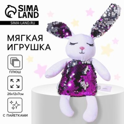 Мягкая игрушка с пайетками «Заяц», 26 см. Мягкая игрушка — это практически всегда беспроигрышный вариант подарка не только для ребенка, но и для взрослого. Малыш всегда одушевляет свои игрушки и считает их друзьями. Став взрослыми, мы не забываем плюшевых друзей детства. Мы даже можем брать их с собой в дорогу в качестве талисмана. Такой подарок точно порадует получателя и вернет его в детство.