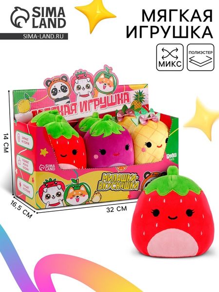 Мягкая игрушка «Фрукты» — это мягкий компаньон, который легко станет любимой игрушкой для ребёнка или милым аксессуаром в доме. Её компактный размер и разноцветные варианты делают его универсальным выбором для подарка или украшения. Нежный на ощупь полиэстер обеспечивает комфорт, а простой дизайн подходит для любого возраста и пола.ОсобенностиИгрушка выполнена в виде очаровательных фруктиков с мягким покрытием.Размер 16 см идеально подходит для игры, переноски или декора.Материал приятен на ощупь и безопасен для детей старше 3 лет.Подходит как для мальчиков, так и для девочек, создавая равные возможности для игр.Добавьте тепла в повседневность«Фрукты» — это не просто игрушка, а источник радости и уюта. Он станет верным другом для ребёнка, помогая развивать заботу и воображение. Удобный размер позволяет брать его с собой куда угодно: на прогулку, в путешествие или просто в кровать. Подарите этот милый аксессуар близким, чтобы порадовать их трогательным и практичным жестом.Как ухаживать за мягкой игрушкойЕсли изделие испачкается, его можно постирать в тёплой воде или протереть влажной губкой.Рекомендуем стирать в воде при температуре 30–40 °C, в режимах «Деликатная стирка», «Ручная стирка», «Шерсть».После водных процедур игрушку необходимо хорошо просушить, чтобы избежать неприятного запаха затхлости.Не рекомендуем сушить изделие на батарее: от высокой температуры и длительного контакта с горячей поверхностью материал игрушки может испортиться.
