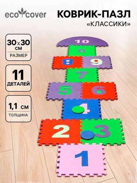 Коврик-пазл «Классики» — это не просто игровое покрытие, а возможность превратить комнату в уютную площадку для игр и обучения. Мягкие модули из экологичного материала ЭВА создают безопасное пространство, где ребёнок может играть в любимые игры прямо дома. Каждый элемент коврика помогает освоить цифры, развить координацию и логическое мышление.ОсобенностиМатериал ЭВА гипоаллергенен, лёгкий, приятный на ощупь и простой в уходе: загрязнения удаляются обычной влажной чисткой.Толщина каждого модуля обеспечивает мягкость при падениях и теплоизоляцию, сохраняя комфорт для ребёнка.Элементы легко соединяются и разъединяются, что позволяет ребёнку самостоятельно собирать конструкцию.Этот коврик создан для активных игр и обучения. Собрав элементы в виде классической игры «Классики», малыш сможет весело проводить время, прыгая по цифрам и запоминая их порядок. Игра способствует развитию мелкой моторики, координации движений и базовых математических навыков. Предложите ребёнку задания: найти конкретную цифру, пересчитать шаги или составить простые числовые последовательности. Это сделает процесс игры увлекательным и образовательным.Создайте безопасную и функциональную игровую зону с ковриком «Классики». Он станет идеальным решением для родителей, которые хотят совместить комфорт, защиту и обучение в одном продукте. Превратите обычные игры в маленькие открытия!