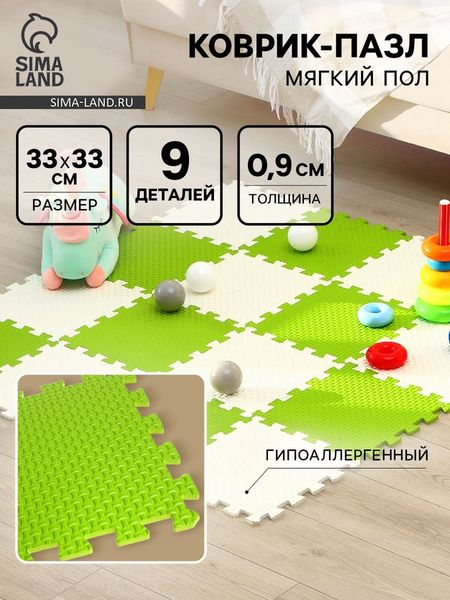 Мягкий пол в виде пазла — это практичное решение для детской комнаты. Такое покрытие станет безопасным и комфортным для детей. Элементы пазла изготовлены из лёгкого и прочного материала — EVA.ОсобенностиЛегко и быстро укладывается.Не требует много места, разобранные элементы аккуратно складываются в стопку.ЭВА — это гипоаллергенный материал, который благодаря своей структуре является мягким и экологически чистым.Материал не деформируется и сохраняет свой внешний вид на протяжении долгих лет.Комплект состоит из 9 частей размером 33 × 33 см. Общая площадь коврика составляет 1 м2.Твёрдость пола 30 шор означает, что он достаточно мягкий и комфортный, но при этом прочный и износостойкий.