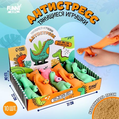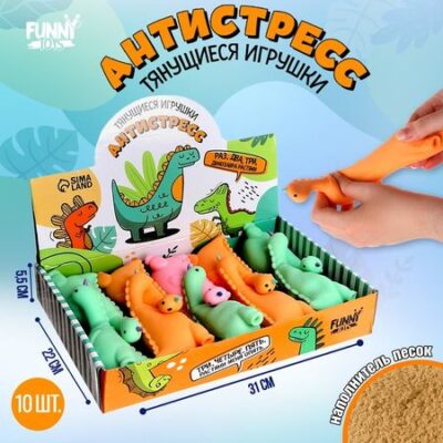 Антистресс-тянучка «Динозавр» — это отличный способ снять напряжение и занять руки. Она подходит как для детей, так и для взрослых, помогая расслабиться и отвлечься от повседневных забот. Игрушка выполнена в ярком дизайне и сочетает в себе свойства мялки и тянучки, что делает её особенно привлекательной для детей.ОсобенностиНаполнение из песка делает игрушку приятной на ощупь и способствует сенсорному развитию.Материал — безопасный ПВХ, подходит для детей от 3 лет.Игрушка сочетает в себе функции мялки и тянучки, что добавляет разнообразия в игру.В шоубоксе 10 игрушек, что позволяет выбрать любимый цвет или поделиться с друзьями.Польза для развитияИгрушка-мялка не только помогает справляться со стрессом, но и развивает мелкую моторику у детей. Её можно мять, тянуть и скручивать — она всегда возвращает свою форму. Её можно использовать дома, в дороге или на работе, чтобы быстро снять напряжение и поднять настроение.