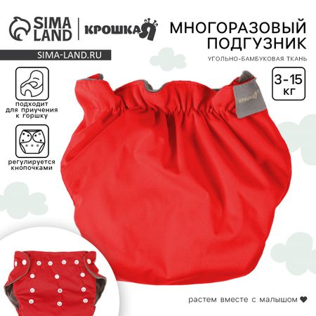Многоразовый подгузник Крошка Я, 3-15 кг, угольно-бамбуковая ткань, красный. • Размер подгузника универсальный, подходит для детей от 3 до 15 кг, от рождения до 3 лет; • Объем по талии и глубина регулируется с помощью кнопок; • Внешний слой выполнен из непромокаемой и дышащей ткани; Уход: машинная и ручная стирка при температуре не выше 40°C. Нельзя гладить и сушить на батарее/полотенцесушителе. Не стирать средствами, содержащими мыло. Можно использовать кислородный отбеливатель. Предварительная стирка обязательна.