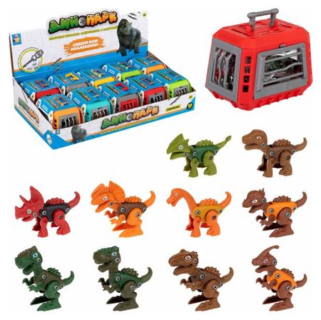 Детская игрушка-сюрприз от бренда 1TOY "Динопарк. Клетка с динозавром". В ассортименте представлено 10 видов разных цветов сборных моделей динозавра с клеткой, который собирается при помощи отвертки (в комплекте). Соберите всю коллекцию милых дино! Какой динозаврик попадется именно тебе — это сюрприз! Игрушка предназначена для детей от 4-х лет. Внутри клетки детали конструктора в количестве от 16 до 20 шт. в зависимости от вида динозаврика и инструкция по сборке. Материал: пластмасса.