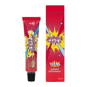 Зубная паста — маркер Bubble Gum MontcarotteСамый востребованный продукт для улучшения навыков гигиены полости рта у подростков и взрослых людей.Уникальный состав, который не имеет аналогов на рынке!Бунтарский дух, стремление к самостоятельности и независимости выбора образа жизни и питания — особенности подросткового периода, которые НЕ лучшим образом сказываются на мотивации к безупречной гигиене полости рта. Мы много наблюдали за подростками и точно знаем, как привлечь внимание молодых людей к гигиене полости рта. А еще учли все особенности здоровья, характера, моды и выпустили коллекцию средств для ухода за полостью рта montcarotte TEENS!Паста — маркер разработана специально как Шаг номер 1 для идентификации зубного налета и Шаг номер 2 для очищения и защиты зубов от кариеса.Индикатор в пасте окрашивает белковый след в налете, маркируя налет на зубах в ярко-голубой цвет во время чистки зубов, указывая где именно необходимо больше уделять внимания и тщательно чистить зубы. В течение первых трех минут чистки интенсивность цвета пасты изменяется, становится светлее, а еще через 10 минут нейтрализуется щелочью слюны.Состав:Содержит 1450 ppm Fиз них NaF 1000 ppm F — источник биодоступных фторидов, который обеспечивает мощную, мгновенную защиту от кариеса,450 ppm Na2PO3F — источник медленных фторидов, который обеспечивает гарантировано долгую защиту от кариеса,Эритритол 10% — очищает, полирует, отбеливает эмаль, останавливает размножение бактерий,Дикальций фосфат 45% — чистящий компонент, по своим свойствам близкий к составу зубной эмали. Он обеспечивает быструю и надежную реминерализацию эмали и восполняет дефицит кальция,Лизоцим — натуральный фермент. Растворяет зубной налет, предотвращает повторное образование зубного налета, оказывает противовоспалительное действие, профилактика гингивита.Паста — маркер вызывает временное окрашивание мягких тканей полости рта.Рекомендуем применять в вечернее время и/или учитывать момент «окрашенного» языка. Зубная паста — маркет является обучающим гигиене полости рта продуктом, учит равномерно очищать поверхность зубов, обращать внимание на труднодоступные места. Особенно рекомендуется пациентам в период ортодонтического лечения, детям для обучения гигиене полости рта. 7+.