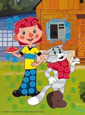 Мозаика из пуговиц придётся по душе любому ребенку! В процессе работы необходимо клеить пуговицы в окошки, нанесенные на картинку, подбирая цвет пуговиц в соответствии с цифрой. Это занятие позволит юным мастерам развить гибкость пальцев и художественный вкус, а также потренироваться в счете. В комплекте: картинка формата А5, пуговицы на самоклеящейся основе.