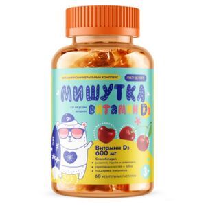 Мишутка Витамин D3 — это вкусные и полезные жевательные пастилки для детей и подростков.Натуральный комплекс мармеладных витаминов для детей и подростков, которые поддерживают здоровье и активность круглый год. Жевательные пастилки, выполненные в виде любимых всеми мишек, обладают приятным вкусом вишни и станут отличным дополнением к ежедневному рациону, обогащая организм витамином D3.Поддержка иммунитета и защита организма круглый год.Рост и развитие костей и зубов, что особенно важно в период активного роста у детей и подростков.Улучшение внимания и мышления, что способствует успешному обучению и помогает справляться с нагрузками в школе.Снижение воспалительных процессов и уменьшение тревожности, апатии и сонливости.Поддержка тонуса и активности, что помогает детям оставаться бодрыми и энергичными каждый день.Эти мармеладные мишки vitamin D3 со вкусом вишни не только вкусные, но и полезные! Благодаря натуральному составу и удобной форме, дети получают максимум пользы для организма с удовольствием. Настоящая вкусняшка, которую любят, и ценят за её пользу.