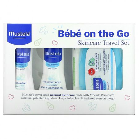 Продукт прошел клинические испытания Экологически безопасный продукт Содержит натуральные ингредиенты Сертификат B Corporation Состав набора Нежный очищающий гель для волос и тела, 50 мл (1,69 жидк. унции) очищает и успокаивает нежные волосы и кожу ребенка. Лосьон для тела Hydra Bebe®, 50 мл (1,69 жидк. унции). Увлажняющий лосьон для тела для ежедневного применения, который обеспечивает немедленное и длительное увлажнение. Влажные очищающие салфетки (25 шт.). Ультрамягкие салфетки бережно очищают лицо, тело и участки кожи под подгузниками, смягчая, освежая и увлажняя кожу вашего малыша. Небольшие упаковки натуральных средств для ухода за кожей Mustela, содержащих запатентованный натуральный ингредиент Avocado Perseose®, обеспечивают чистоту и увлажнение кожи вашего малыша в любое время и в любом месте. Лосьон для тела, 50 мл (1,69 жидк унции)Для нормальной кожи Увлажняет и укрепляет Запатентованный натуральный ингредиент с защитный действием Без парабенов, фталатов и феноксиэтанолаСодержит 97% натуральных ингредиентов Мгновенное увлажнение и длительный эффект. Сохраняет уровень увлажненности кожи. Не вызывает аллергических кожных реакций у детей с первых дней жизни. Средство с минимальным риском появления аллергических реакций. Нежный очищающий гель, 50 мл (1,69 жидк. унции)Для нормальной кожиОчищает и смягчает Запатентованный натуральный ингредиент с защитный действием Безопасен для применения с первых дней жизни Без парабенов, фталатов и феноксиэтанолаСодержит 93% натуральных ингредиентов Бережно и эффективно очищает волосы и кожу. Не содержит мыла — без слез с первых дней жизни. Средство с минимальным риском появления аллергических реакций. Влажные очищающие салфетки (25 шт.)Безопасно для кожи. Безопасно для планеты Для нормальной кожи Протестировано дерматологами. Содержит 97% натуральных ингредиентов Бережно и эффективно очищают лицо, руки и тело, включая участки кожи под подгузниками, смягчая и увлажняя кожу. Не вызывают аллергических кожных реакций и не раздражают глаза с первых дней жизни. Герой Mustela — авокадо! Avocado Perseose® — ингредиент, полученный по безотходной технологии из экологически чистого сырья с ответственным отношением к закупкам. Он помогает укрепить водный барьер кожи, защищая нежную кожу ребенка.