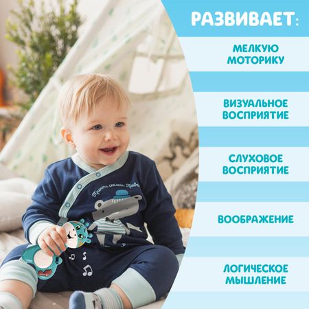 Музыкальная игрушка «Малыш Роро», звук, свет, цвет зеленый. Музыкальная игрушка «Малыш Роро» привлечет внимание трогательным дизайном и надолго займет малыша благодаря множеству полезных функций. Игрушка не только развлечет ребенка — с ней можно осваивать новые навыки! <b> Особенности игрушки</b> <ul> <li> Воспроизводит веселые песенки и звуки животных.</li> <li> У зверька светится мордочка.</li> <li> Для работы необходимы 2 батарейки типоразмера AA. Батарейки в комплект не входят.</li> </ul> <b> Какие песенки воспроизводит игрушка</b> <ol> <li> «Мамочка».</li> <li> «Я в ладошки хлоп-хлоп».</li> <li> «Солнышко».</li> <li> «Скачет зайка».</li> <li> «Рыжая коровка».</li> <li> «Скоро стану я большой».</li> </ol> <b> Звуки каких животных воспроизводит игрушка:</b> <ul> <li> ослик,</li> <li> кошка,</li> <li> курица,</li> <li> собачка,</li> <li> корова.</li> </ul> <b> Чем полезны занятия с музыкальной игрушкой</b> Взаимодействуя с игрушкой, малыш тренирует слуховое восприятие, мелкую моторику, координацию движений, ловкость, мышление и воображение. Рекомендовано детям от 1 года.
