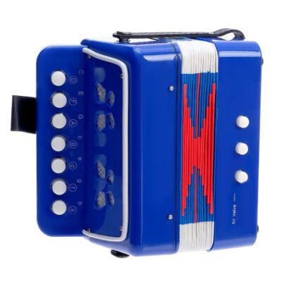 Музыкальная игрушка «Гармонь», цвет синий. Музыкальная гармошка «Весело поем» привлечет внимание трогательным дизайном и надолго займет малыша благодаря множеству полезных функций. Игрушка не только развлечет ребенка — с ней можно осваивать новые навыки! <b> Особенности игрушки</b> <ul> <li> Имитирует настоящий инструмент.</li> <li> Чтобы сыграть мелодию, гармонь необходимо раздвигать и сдвигать, как настоящую, при этом нажимать на кнопочки.</li> <li> Над кнопочками прописаны аккорды.</li> <li> С одной стороны корпуса находится фиксатор для руки, с другой – фиксатор большого пальца.</li> <li> Для работы батарейки не нужны.</li> <li> Размер игрушки: 19 × 18 см.</li> </ul> <b> Чем полезны занятия с музыкальной гармошкой</b> Малыш сможет весело растягивать инструмент и нажимать на кнопочки, тренировать мелкую моторику. Кроха будет слушать мелодии и звуки, развивать чувство ритма и музыкальный слух. Также он сможет импровизировать, сочиняя свои мелодии. Рекомендовано детям от 3 лет.