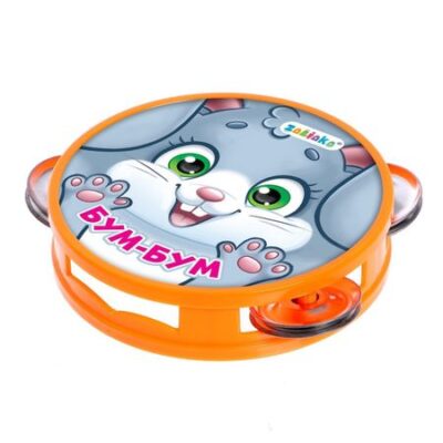 Музыкальная игрушка бубен «Бум-бум!». Музыкальная игрушка «Бубен. Бум-бум!» поможет весело провести время и потренировать полезные навыки. <b> Особенности игрушки</b> <ul> <li> Изделие выполнено из пластмассы и имеет 4 пары металлических дисков.</li> <li> У бубна есть отверстие, за которое малышу будет удобно держать игрушку.</li> </ul> <b> Учимся различать темп</b> <ul> <li> Для занятий необходимо заранее подготовить медленные и быстрые произведения, а еще лучше использовать мелодии со сменой темпа.</li> <li> В зависимости от темпа произведения выполняйте с малышом разные движения.</li> <li> Бейте в бубен в такт музыке, а ребенок пусть двигается соответственно ударам бубна: например, под быстрые удары скачет, а под медленные — важно ходит.</li> </ul> <b> Учимся различать громкость</b> <ul> <li> Предложите малышу под громкую музыку издавать бубном громкие звуки, а под едва слышную музыку — тихие.</li> <li> Другой вариант игры — вы играете в бубен, а малыш под тихие удары буна ходит на носочках, под громкие — шагом, под очень громкие — бегом.</li> </ul> <b> Чем полезны занятия с музыкальной игрушкой</b> Взаимодействуя с игрушкой, ребенок тренирует мелкую моторику, координацию движений, развивает воображение, слуховое и визуальное восприятие.