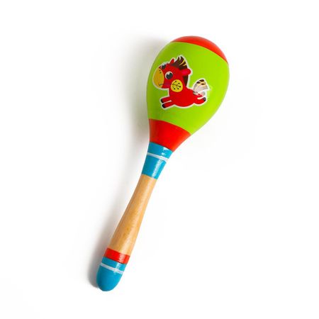 Музыкальная игрушка маракас «Лошадка», 20 см. Маракас — это музыкальный инструмент с пересыпающимися шариками внутри. Малыши очень любят его, ведь он напоминает погремушку. Маракас издает приятный шуршащий звук и позволяет создавать короткие мелодии, под которые так весело танцевать! <b> Чем полезен?</b> <ul> <li> развивает координацию движений, мелкую моторику и подвижность кистей рук;</li> <li> формирует музыкальный слух и чувство ритма.</li> </ul> Заботливые родители оценят: яркая забавная игрушка сделана из экологически чистого материала (натуральной древесины) и покрыта безопасными красками.