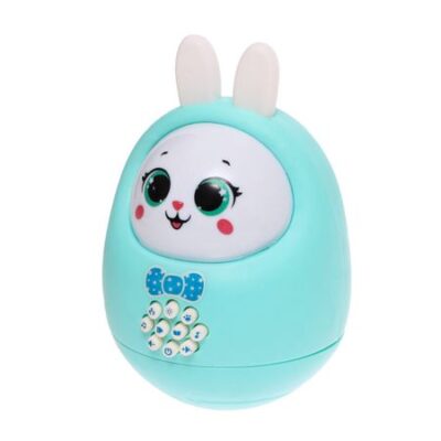 Музыкальная неваляшка «Милый зайчик», звук, свет, цвет голубой. Игрушка-неваляшка поможет потренировать музыкальный слух, мелкую моторику рук и память. Занимаясь с ней, малыш познакомится со счетом, научится различать животных и звуки, которые они издают. <b> Режимы игры</b> <ul> <li> Песенки-сказки.</li> <li> Цифры.</li> <li> Веселые песенки.</li> <li> Звуки животных.</li> </ul> <b> Какие песенки воспроизводит игрушка:</b> <ul> <li> «Считалочка».</li> <li> «Я стою на сцене».</li> <li> «Давай с тобой попляшем».</li> </ul> <b> Какие песенки-сказки воспроизводит игрушка:</b> <ul> <li> «Колобок».</li> <li> «Теремок».</li> </ul> <b> Звуки животных:</b> <ul> <li> корова,</li> <li> кошка,</li> <li> курица,</li> <li> лошадь,</li> <li> собачка.</li> </ul> Размер игрушки: 9 × 9 × 14 см. Ушки светятся. Зайчик работает от 3 батареек типоразмера AAA, в комплект не входят. Рекомендуется детям от 1 года.