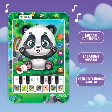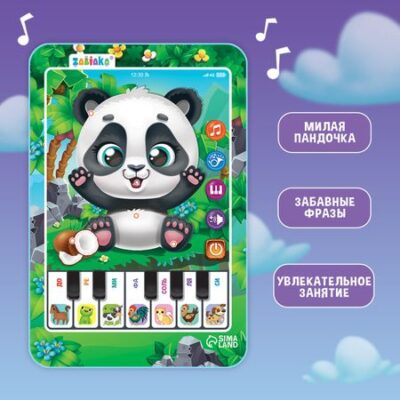 Музыкальный планшет «Панда», звук. Музыкальный планшет «Панда» привлечет внимание трогательным дизайном и надолго займет малыша благодаря множеству полезных функций. Игрушка не только развлечет ребенка — с ней можно осваивать новые навыки! <b> Особенности игрушки</b> <ul> <li> Четыре режима игры: песенки, ноты, фразы и звуки животных.</li> <li> Планшет небольшого размера малышу будет удобно держать.</li> <li> Есть кнопка включения и регулировка громкости.</li> <li> Для работы необходимы 3 батарейки типоразмера ААА. Батарейки в комплект не входят.</li> <li> Рекомендована детям от 3 лет.</li> </ul> <b> Игрушка воспроизводит песенки:</b> <ol> <li> «Зайчик».</li> <li> «Ладушки, ладушки».</li> <li> «Мишка косолапый».</li> <li> «Гуси, гуси».</li> <li> «Песня про соловья».</li> <li> «Муха».</li> <li> «Сорока-белобока».</li> <li> «Пальчики».</li> <li> «Ай-лю-ли».</li> <li> «Аты-баты».</li> <li> «Букет».</li> <li> «День рождения».</li> <li> «Дом».</li> <li> «Лисичка».</li> <li> «Весна».</li> <li> «Дождик».</li> <li> «Котя-котенька».</li> <li> «Мама утка».</li> <li> «Ай-ду-ду».</li> <li> «Карандаши».</li> </ol> <b> Игрушка воспроизводит фразы:</b> <ul> <li> «Погладь меня».</li> <li> «Давай играть!»</li> <li> «Ой-ой-ой».</li> <li> «Как же с тобой весело!»</li> <li> «М-м-м, вкусно!»</li> </ul> <b> Чем полезны занятия с игрушкой</b> Взаимодействуя с музыкальной игрушкой, ребенок тренирует слуховое и визуальное восприятие, воображение и мелкую моторику рук.