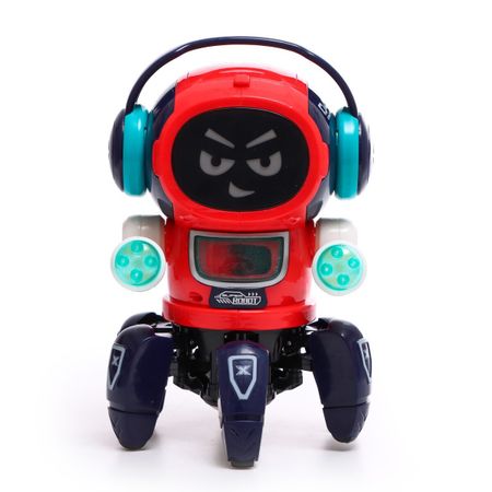 Музыкальный робот «Смарти», русское озвучивание, световые и звуковые эффекты, цвет красный. Робот музыкальный «Смарти» — очаровательный подарок для детей. С веселым озорником никогда не соскучишься! Он заряжает друзей энергией и позитивом. Космический житель покорит обаянием и харизмой с перовых минут и подарит радостные эмоции. <b> Особенности</b> <ul> <li> Яркий дизайн, световые эффекты и веселые песни привлекут внимание непоседы.</li> <li> Робот танцует, машет руками и вращается.</li> <li> Ходит на 6 ногах вперед и назад.</li> <li> Товар сертифицирован и соответствует всем стандартам качества и безопасности.</li> <li> Для работы световых и звуковых эффектов игрушки требуется 3 батарейки типоразмера AA. В комплект не входят.</li> </ul> С увлекательной игрушкой малыш весело и с пользой проведет время, развивая воображение, фантазию и внимание.