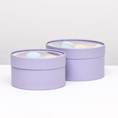 Набор 2 в 1 круглых коробок "Бледно-фиолетовый" с окном, 21×11 — 18×10 см. Набор круглых коробок с окном . Изготовлена из плотного картона. Прекрасно подойдет для оформления подарка, и праздничного декора. Можно использовать не только как упаковку для презента, но и легко встроить в домашнюю систему хранения полезных мелочей. <strong> Преимущества:</strong> <ul> <li> плотный картон;</li> <li> оригинальное оформление;</li> <li> удобно при транспортировке.</li> </ul>