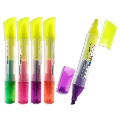 Набор 4 шт (3+1 повторяющийся цвет) маркер текстовыделитель наконечник скошенный 5мм корпус треугольный двухцветный. Текстовыделители предназначены для выделения текста на бумаге любого типа, включая факс — бумагу. Необходимый помощник школьника, студента и любого человека, который вдумчиво работает с текстом. Расставить яркие акценты в лекции, выделить главные тезисы в документе, подготовить речь — именно для этого был придуман текстовыделитель.