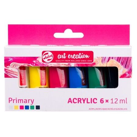 Акриловые краски Art Creation изготовлены на основе 100%-ой акриловой смолы. Они универсальны в использовании и подходят для всех поверхностей: холста, бумаги, дерева, камня, могут быть даже нанесены поверх цемента и штукатурки. Краски пастообразные, разбавляются водой. Высыхая, становятся водонепроницаемыми. Обладают высокой светостойкостью и равномерной вязкостью. Это идеальный вариант для начинающих художников и первых шагов в искусстве.В составе: 105 Титановый белый, 275 Первичный желтый, 369 Первичный пурпурный, 572 Первичный голубой, 619 Перманентный зеленый темный, 701 Слоновая кость.