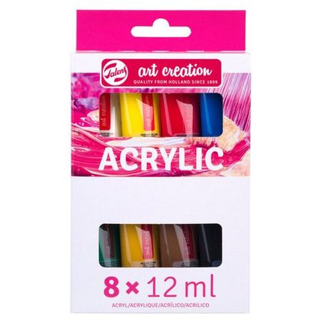 Акриловая краска Talens art Creation — это надежная акриловая краска на основе акрилатной смолы.Краска пастообразная, быстро сохнет и имеет шелковистый блеск.Эту акриловую краску можно использовать прямо из тюбика или разбавить водой и после высыхания сделать водонепроницаемой.Цвета легко смешиваются друг с другом и удобны в использовании благодаря дозирующему колпачку.Эту универсальную краску можно наносить практически на любую поверхность, если она слегка впитывает влагу и не содержит жира и пыли.От холста и бумаги до штукатурки, картона, дерева, камня и цемента.Поскольку тюбики прозрачные, вы можете легко выбрать правильный цвет при покраске.Этот набор акриловых красок из 8 тюбиков по 12 мл предлагает хорошую базовую палитру цветов для создания различных картин.Благодаря удобному размеру эти тюбики идеально подойдут для использования в вашей студии или для того, чтобы взять с собой в поездку.В составе: 105 Титановые белила, 275 Первичный желтый, 369 Первичный пурпурный, 572 Первичный голубой, 619 Перманентный зеленый темный, 227 Желтая охра, 409 Жженая умбра, 701 Слоновая кость, Черная.