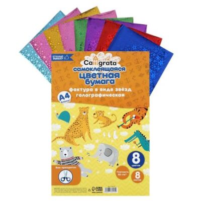 Главная » Товары для детей Набор бумаги голографической самоклеящейся Просмотров 7 Набор бумаги голографической самоклеящейся "Звезды" А4, 8 листов, 8 цветов, рисунок, 80 г/м2. Calligrata