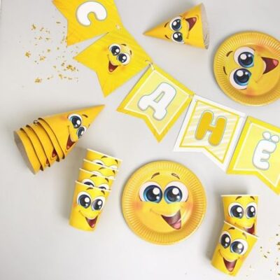 Набор бумажной посуды Страна Карнавалия смайлы с улыбкой 19 предметов