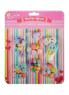 Замечательный набор для девочек. Бусинки разных цветов и оттенков, есть прозрачные и матовые, есть бусинки с перламутровым напылением, в виде цветочков, бабочек, шариков – все невероятно красивые. Бусинки довольно маленькие, поэтому нанизывание их на веревочку принесет Вашему ребенку не только удовольствие, но и пользу: набор послужит хорошим тренажером для развития мелкой моторики, координации движений, глазомера и творческого мышления.