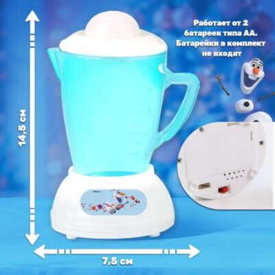 Набор бытовой техники Frozen, Холодное сердце: микроволновка и блендер. <em> Погрузись в магию семейной кухни вместе с любимыми героями!</em> Набор кухонной техники «Холодное сердце» — это микроволновая печь и блендер, созданные специально для девочек от 3 лет. Игрушка повторяет настоящую бытовую технику, но адаптирована под детскую игру: свет, звук, движение, возможность заливать воду и открывать дверцу. <b> Особенности</b> <ul> <li> Микроволновка оснащена открывающейся дверцей, вращающейся тарелкой, подсветкой и звуковыми сигналами. Блендер также светится, издает звуки, его крышка закрывается, чаша вращается. Ребенок может наливать воду и «готовить» напитки, имитируя процесс приготовления.</li> <li> Звуковые эффекты и работа от батареек делают игру живой и увлекательной. Такая техника помогает развивать речь, воображение, знакомит с бытовыми процессами и формирует навыки ролевой игры.</li> <li> Набор выполнен в стиле популярного мультфильма Disney. Это усиливает эмоциональный отклик у ребенка и делает игру более яркой и запоминающейся.</li> <li> В наборе есть аксессуары — продукты, которые позволяют сразу начать игру.</li> </ul> Набор кухонной техники «Холодное сердце» идеален как подарок девочке, которая любит играть в «дочки-матери», готовить или просто обожает героинь мультфильма «Холодное сердце». Он сочетает в себе обучение через игру, интерактивность и безопасность материалов. Техника работает от батареек типа AA, легко заменяются. Подарите ребенку кухню мечты и возможность почувствовать себя маленькой хозяйкой!